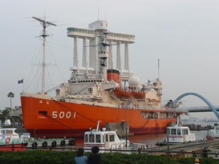 存分に"鉄分"を補充したのち、水上バスで名古屋港水族館前に移動すると、そこには現役を引退し係留保存された南極観測船「ふじ」が!